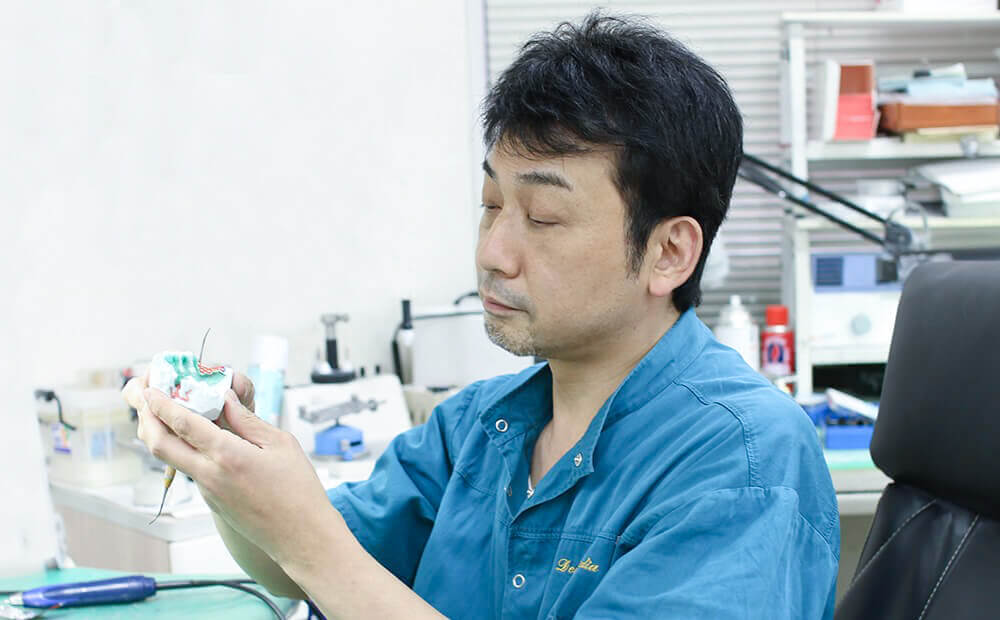 Dentures 入れ歯 自費専門の歯科技工士 久保田歯科クリニックのご提案する保険外入れ歯や義歯は、高い技術を誇るベテランの自費専門歯科技工士が製作しています。 クリニックで患者さんのお悩みや現状を伺い、クリニックとの長年続く信頼関係と的確な連携に基づいて歯科技工士が一人一人に合わせた最適な入れ歯や義歯をご提供します。 入れ歯や義歯について気になること、悩んでいることがありましたら、まずはお気軽にご相談ください。 こんなお悩みはありませんか? 入れ歯を口に入れると痛い 食べ物がうまく噛めない 入れ歯がすぐに外れる 入れ歯の臭いが気になる 当院では、少しでも快適に毎日をお過ごしいただけるよう、ご相談のたびにその改善のための調整を行ったり、対策・アドバイスをお伝えします。 Difference 保険と自費診療の違い 入れ歯治療には保険診療と自費診療があります。保険診療はレジン(プラスチック)製で費用が抑えられますが、厚みがあり違和感が出やすく、耐久性も低めです。一方、薄くて快適、耐久性や審美性も優れていますが、費用はやや高額になります。 費用を抑えたいなら保険診療、快適さや見た目を重視するなら自費診療がおすすめです。 自費のメリット 薄くて違和感が少ない 耐久性が高く、長持ちしやすい 審美性が高く、自然な見た目 咀嚼力が向上しやすい 自費のデメリット 費用が高くなる 歯茎や粘膜に炎症がある場合は処置を受けられないことがあります Caution 入れ歯の注意事項 歯磨き粉は使用しない 研磨剤入りの歯磨き粉は表面を傷つけるため、専用洗浄剤を使います。 水や専用洗浄液で保管 乾燥すると変形やひび割れの原因になるため、必ず水や洗浄液に浸けて保管します。 熱湯は使わない 高温で変形する恐れがあるため、洗浄やすすぎはぬるま湯以下で行います。 無理な調整をしない 自分で削ったり曲げたりせず、合わない場合は必ずご連絡ください。 食べ方を工夫する 最初は柔らかいものから慣らし、左右均等に噛むよう心がけます。 Q&A よくある質問 入れ歯に慣れるまでどのくらいかかりますか? 個人差はありますが、通常は1〜2週間ほどで慣れてきます。最初は違和感がありますが、徐々に自然に使えるようになります。 食事や会話は今まで通りできますか? 初めは発音や噛み方に慣れるまで少し時間がかかります。柔らかい食べ物から始め、左右均等に噛むよう意識するとスムーズに慣れます。 入れ歯は毎日外して手入れする必要がありますか? はい。食後や就寝前に外して、入れ歯専用ブラシと洗浄剤で清潔に保ちましょう。 寝るときは入れ歯を外したほうがいいですか? 基本的には外して、水や洗浄液に浸けて保管します。口内の休息と入れ歯の変形防止のためです。 入れ歯の寿命や交換の目安はどれくらいですか? 平均で5〜7年程度ですが、歯ぐきや骨の形が変化すると合わなくなるため、定期的な調整が必要です。 Flow 入れ歯の種類 保険診療の入れ歯 レジン床 材質が弱いために、割れないように作るため、やや床が厚くなり、口の中で違和感があります。また、プラスチックは水を吸う性質があるので、汚れやすい材質で、熱も伝わりにくいです。当院では可能な限り、薄く違和感ないように作っていますが、限界があります。 自費診療の入れ歯 コバルトクロム床 丈夫な金属を使うことにより、保険入れ歯の約1/5の厚さで熱の伝わりもよく、快適な状態で長く使えます。 ノンクラスプデンチャー 審美的に良い部分入れ歯。入れ歯のひっかけが、口腔内と同じ色でできているため、装着していても目立たないのが特徴です。インプラント治療には抵抗があったり、見栄えが気になる方におすすめの入れ歯です。